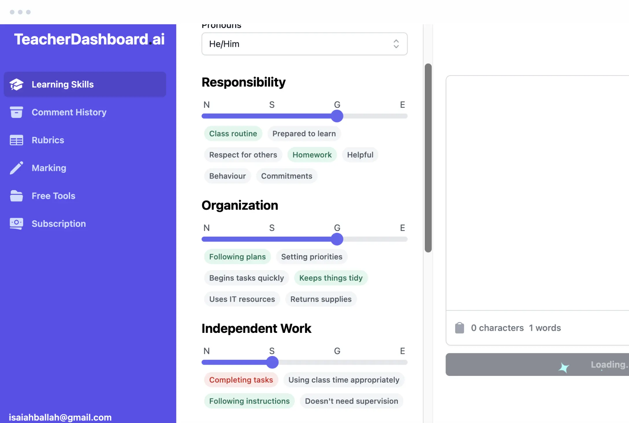Rubric Generator, Mark Written Assignments, Report Card Subject Comments and Learning skill Comment Writer. Save hours with our AI tools for teachers.